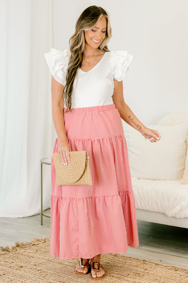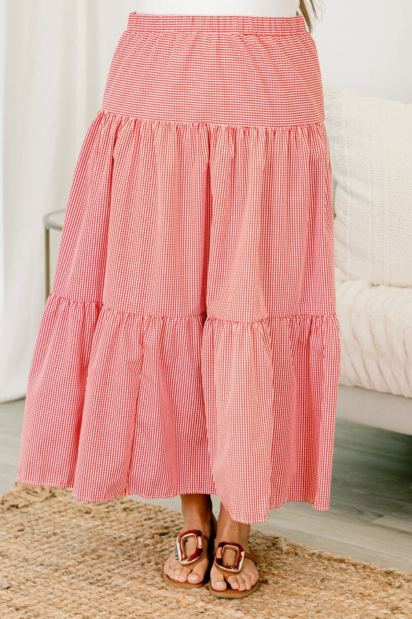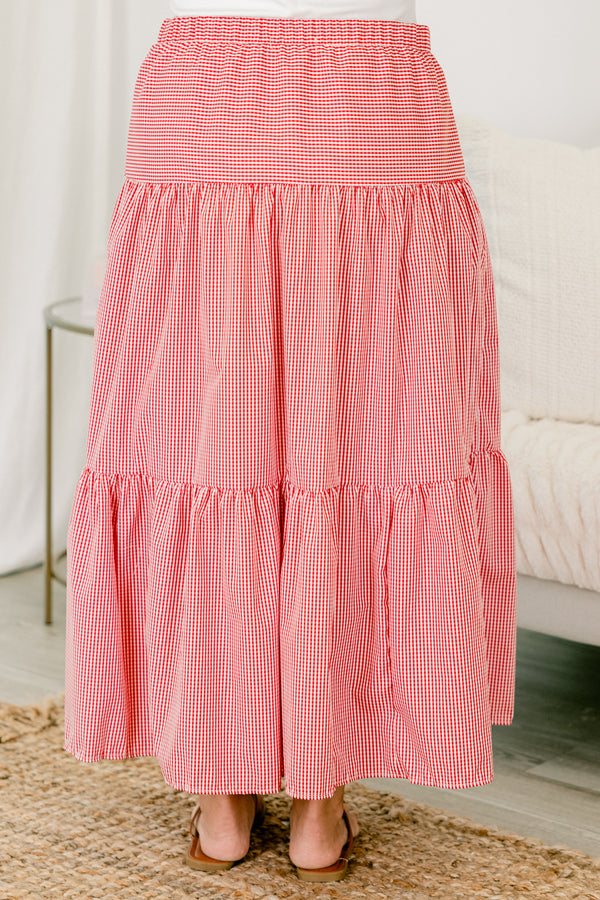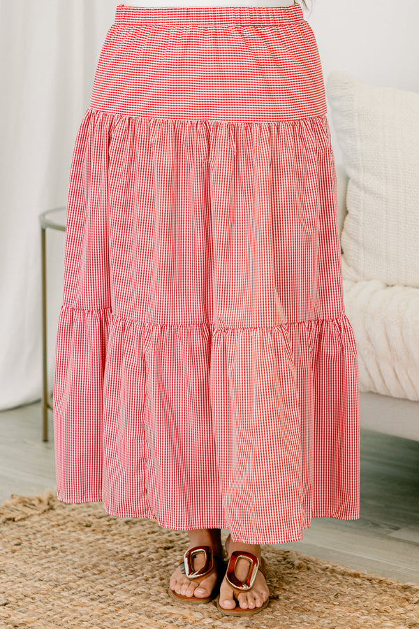 Brighten your day with the Said In Stride Skirt in red gingham! Its elastic waist ensures a comfy fit, while the tiered skirt adds a flirty bounce to your every move! Perfect for playful, sunny adventures
