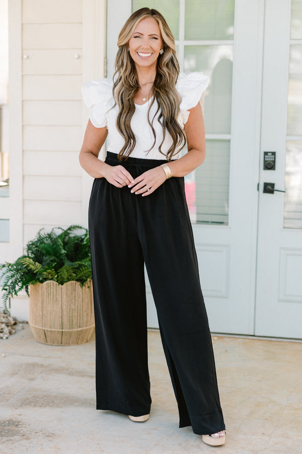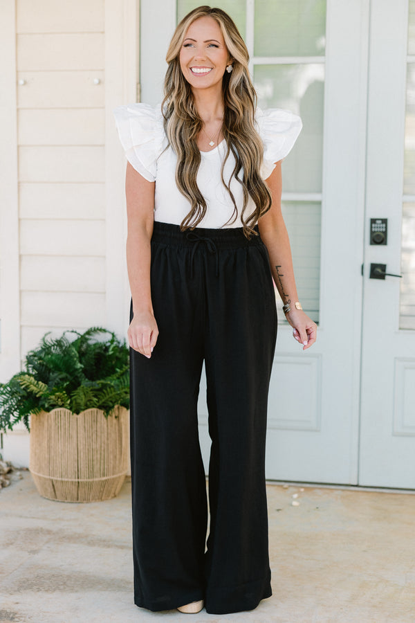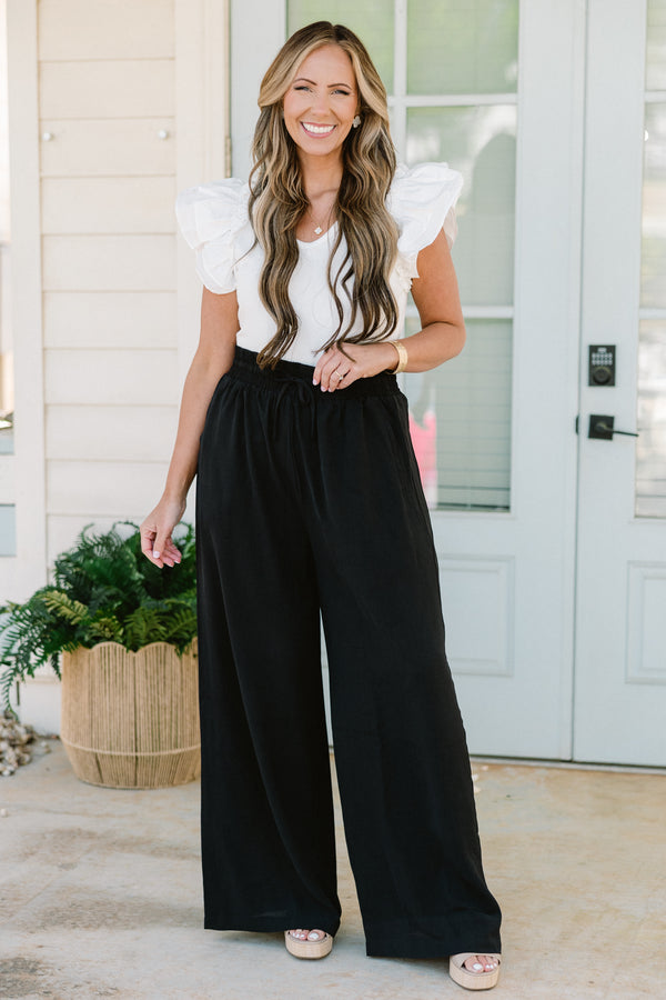 You'll look so fabulous you can't sit still in these pants! They are a must-have for every wardrobe! These lovely pants feature an elastic waistband for exceptional comfort and flexibility, and the neutral black color pairs well with any of your favorite tops! Ideal for any occasion!