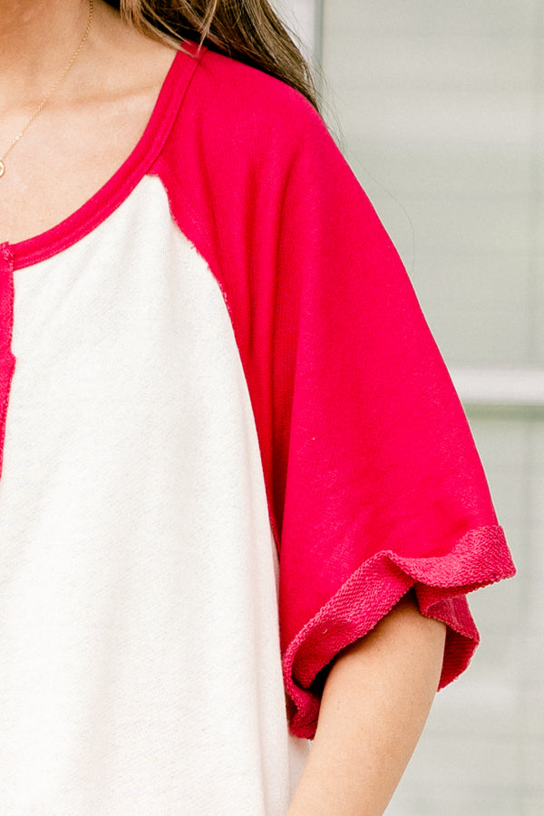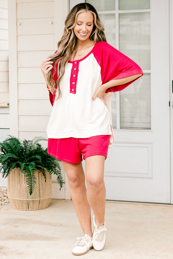Elevate your summer wardrobe with the Errand Run Top in hot pink! Made from soft terry cloth, this color block knit top features functional buttons and pairs perfectly with our Errand Run Shorts! Stay stylish and comfortable while staying on the go in this must-have top!