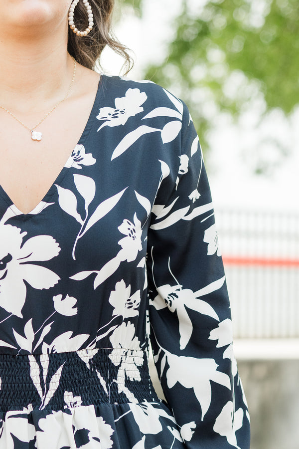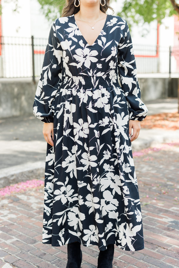 Indulge in the luxurious allure of this dress. This stunning black dress features long puff sleeves, a V-neckline, and a tiered a-line silhouette for a boho-chic look! The smocked waistline creates a flattering shape while the floral print adds a touch of femininity! Perfect for fall, this maxi dress will make you feel confident and stylish!