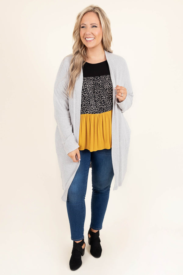 You asked and we delivered! This cardigan has a lovely heather grey color and lightweight feel great for pairing with all your favorite outfits this season! Simply style this cutie with a cute top and skinnies for a casual, chic look!