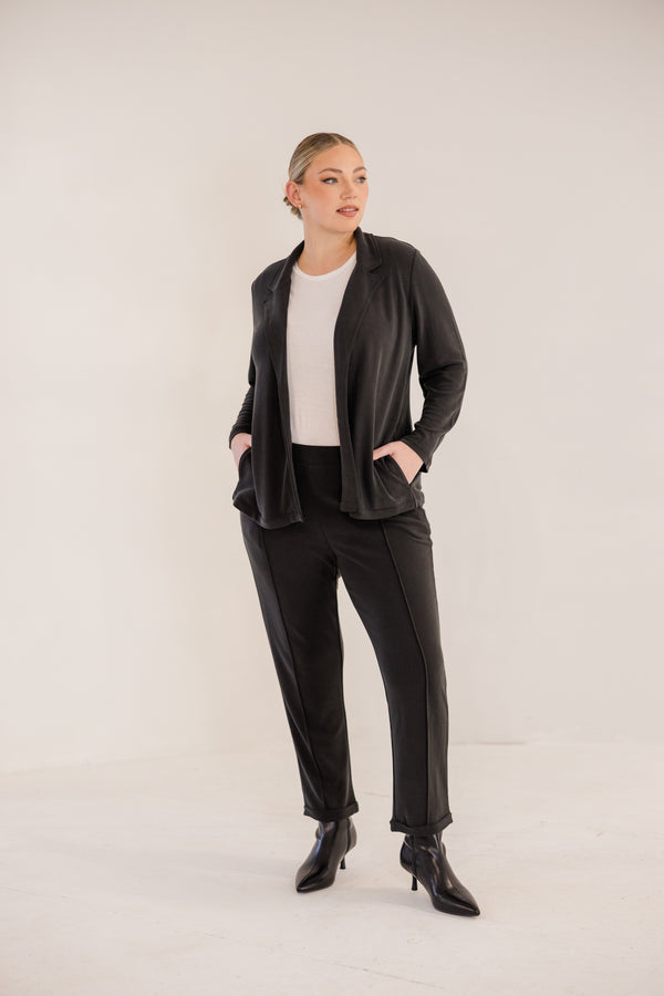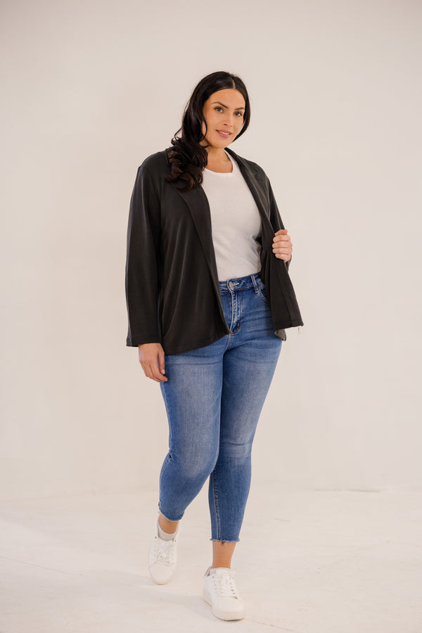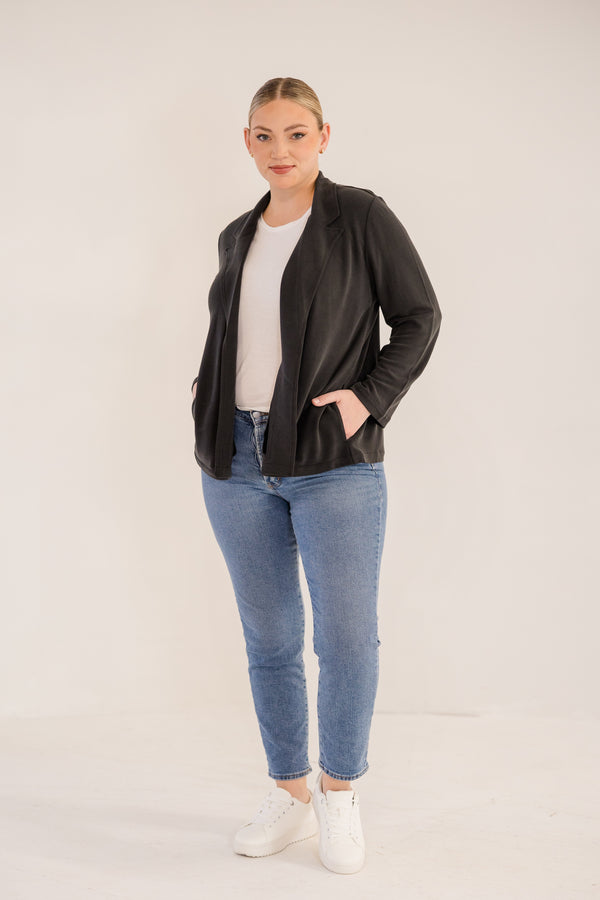 Elevate your outerwear collection with our classic collar knit blazer, a stylish and versatile piece designed for both comfort and functionality. This blazer is the perfect overpiece to transition seamlessly from spring to fall.