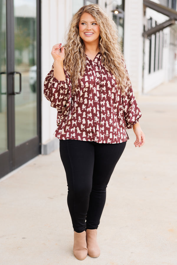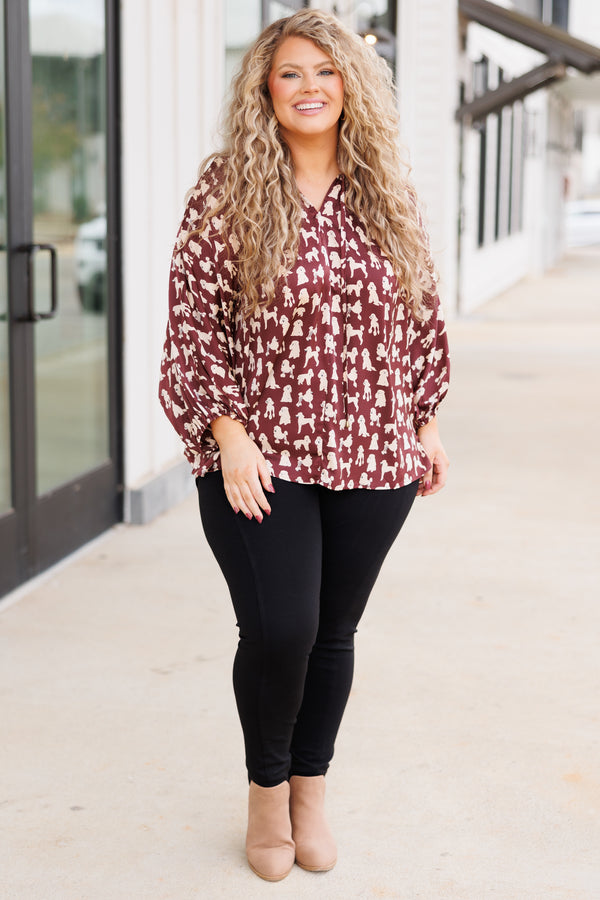 Coffee & Puppies Top, Brown