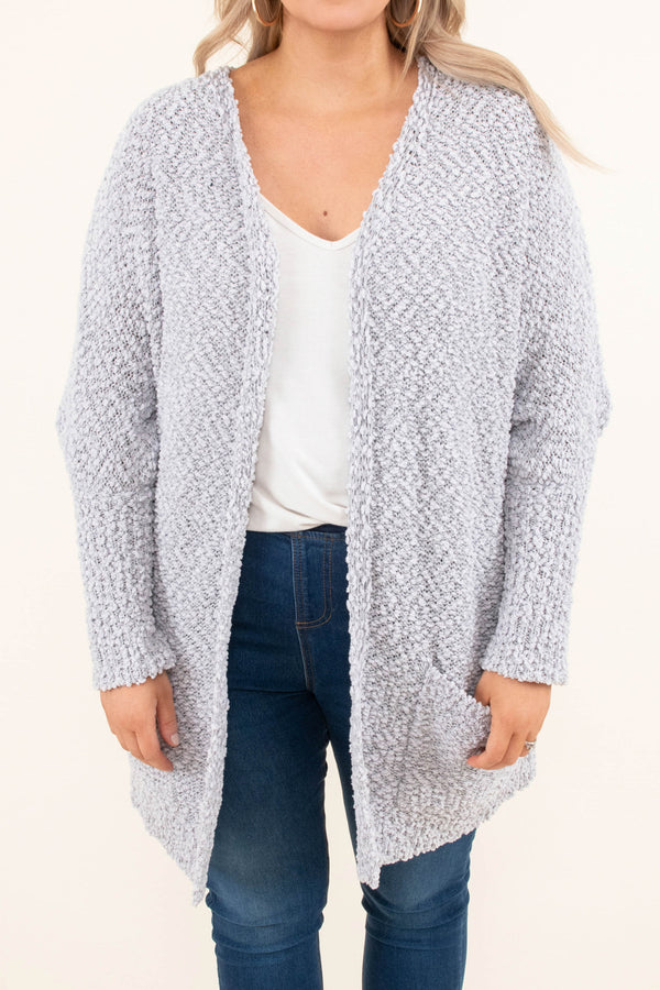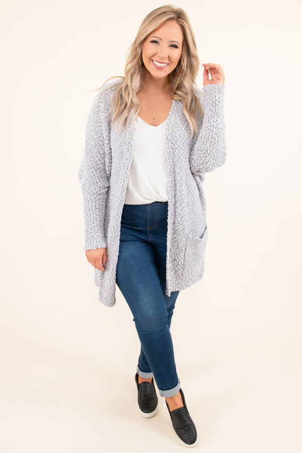 You can feel confident rocking this new cardigan! it has a neutral gray color you can pair with your favorite shoes and accessories! It's comfortable for all day wear, has the cutest popcorn fabric and pockets! Style this cardigan with skinnies or leggings for an easy everyday outfit!