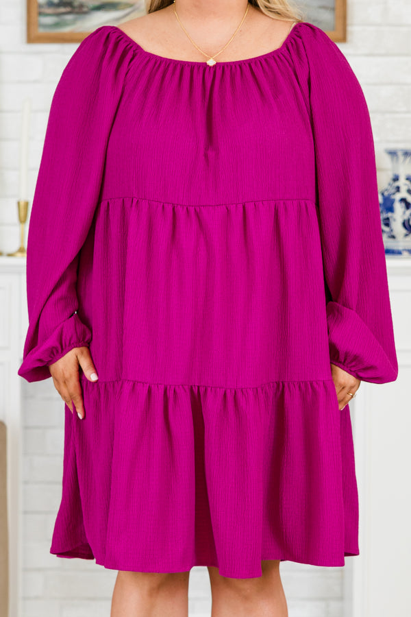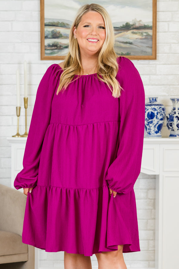 The Dreams In My Heart Dress is a playful addition to your wardrobe! This magenta dress features a tiered babydoll design and long balloon sleeves with elastic cuffs! Let your heart dream and show off your unique style with this fun and flirty dress!