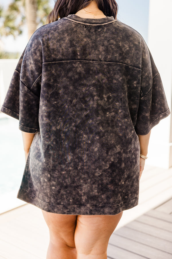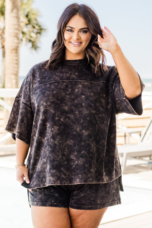 Unleash laid-back vibes with the Easygoing Washed Tee! The subtle acid wash adds a touch of cool to the butter soft material! Featuring a drop shoulder and high low hemline, this tee is perfect for pairing with the matching black shorts!