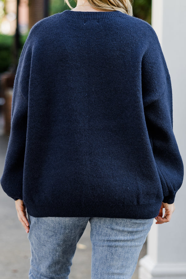 Be the talk of the football moms with this sweater in navy! Designed with a drop shoulder for a relaxed fit, this cozy sweater is perfect for showing off your team spirit! Stay warm and stylish in the stands or on the sidelines! Go team!