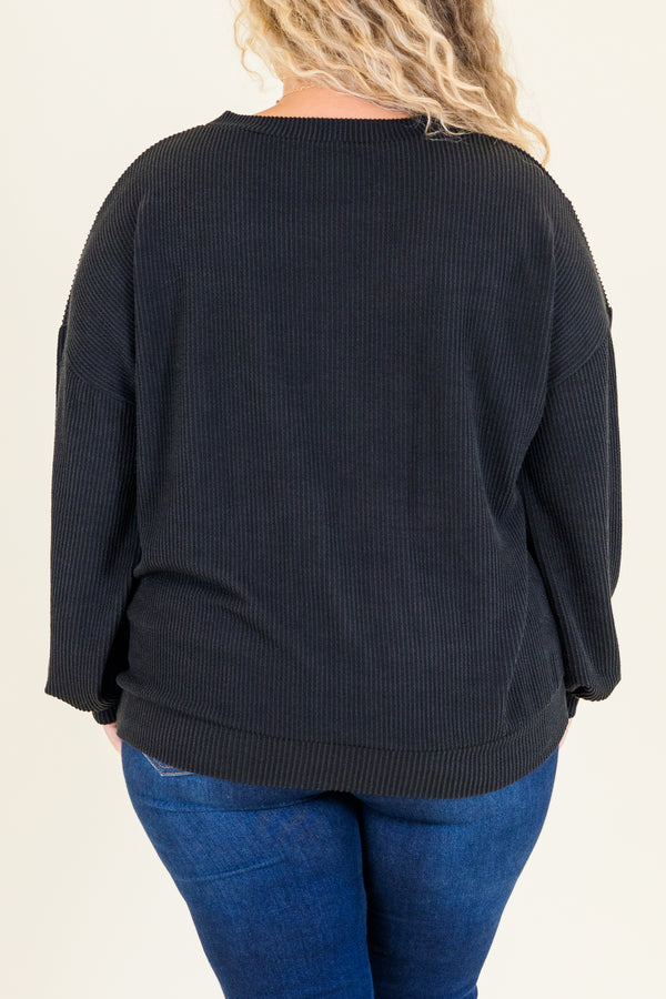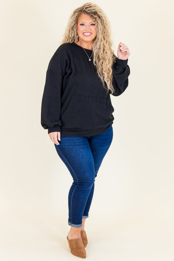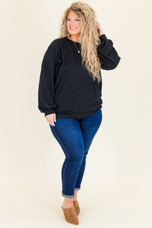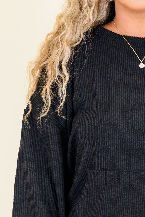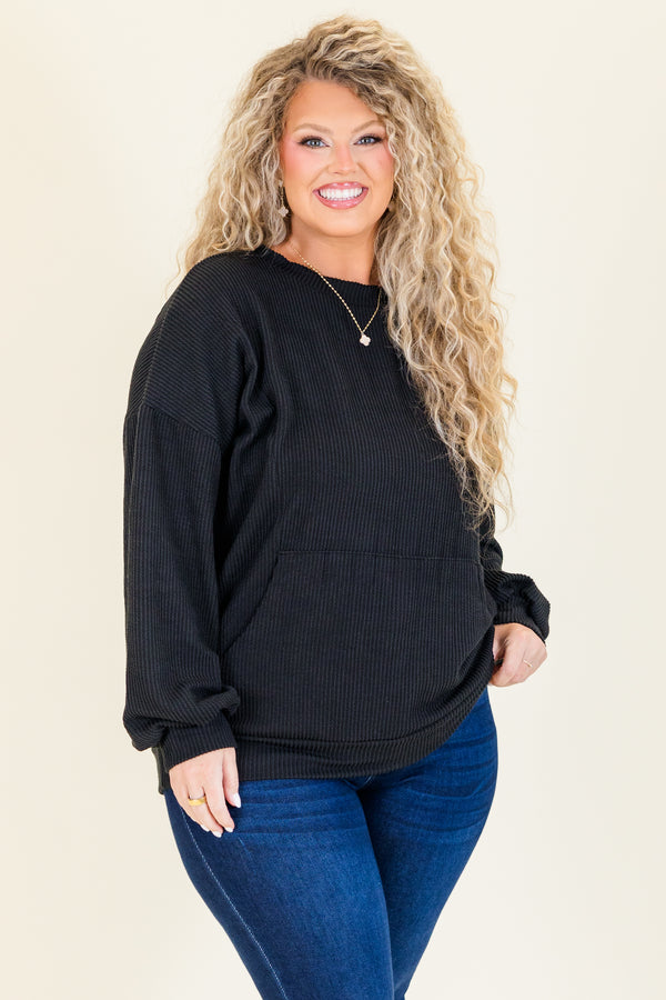 The Fresh For You Top in black is a must-have addition to your wardrobe! Crafted from a trendy ribbed knit, this top offers both style and versatility! With its convenient front pocket, it's the perfect choice for any occasion! Stay on-trend and fashionable with this essential piece!