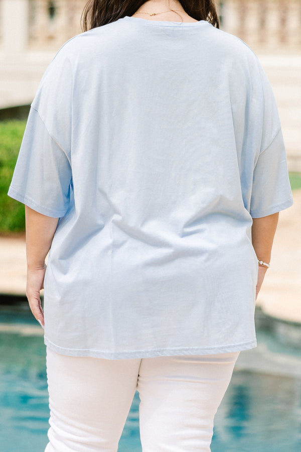 Designed for newlyweds, this FAB boyfriend tee boasts an oversized fit and lovely ash blue color! Its adorable graphic is SO sweet! Perfect for a just married bride, this tee is both stylish and comfortable!