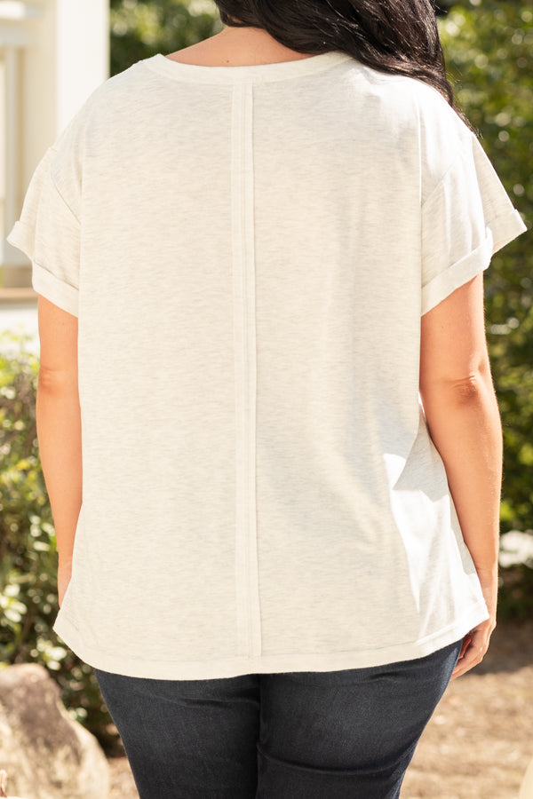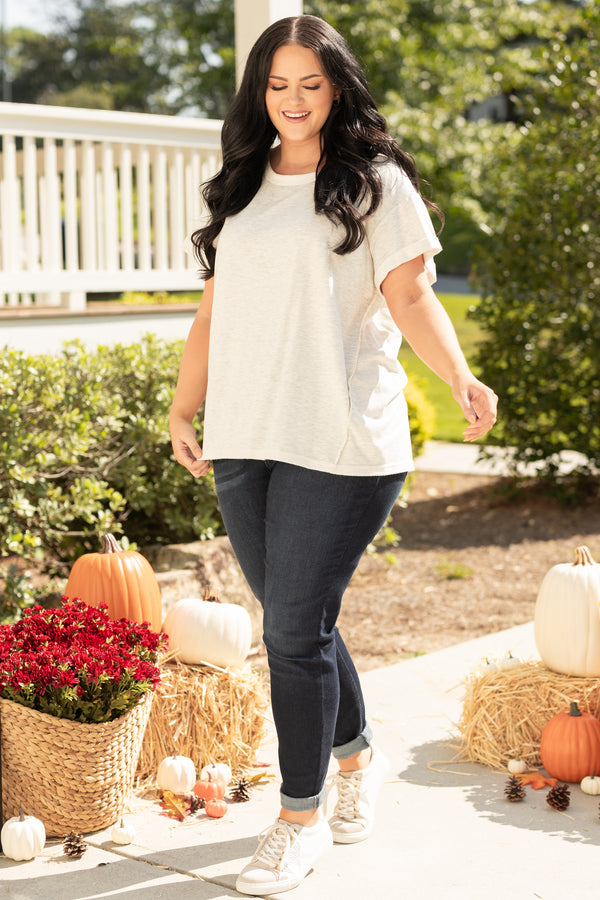 We simply adore this top! It has a figure-flattering, stretchy option that adds a casual chic to your look! It's classic heather grey color pairs beautifully with skinnies or leggings for a versatile outfit!