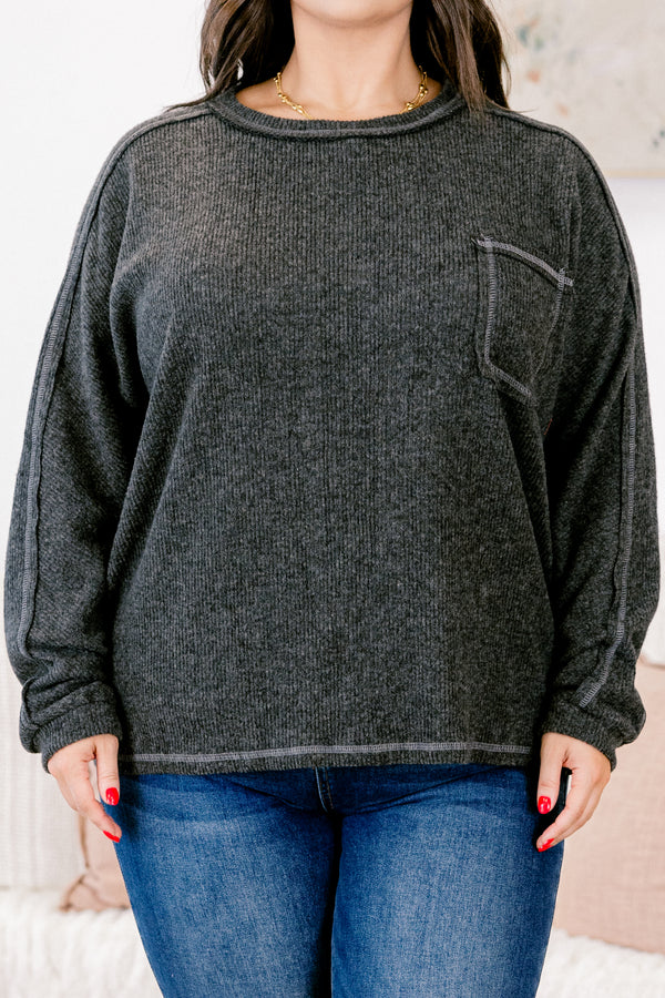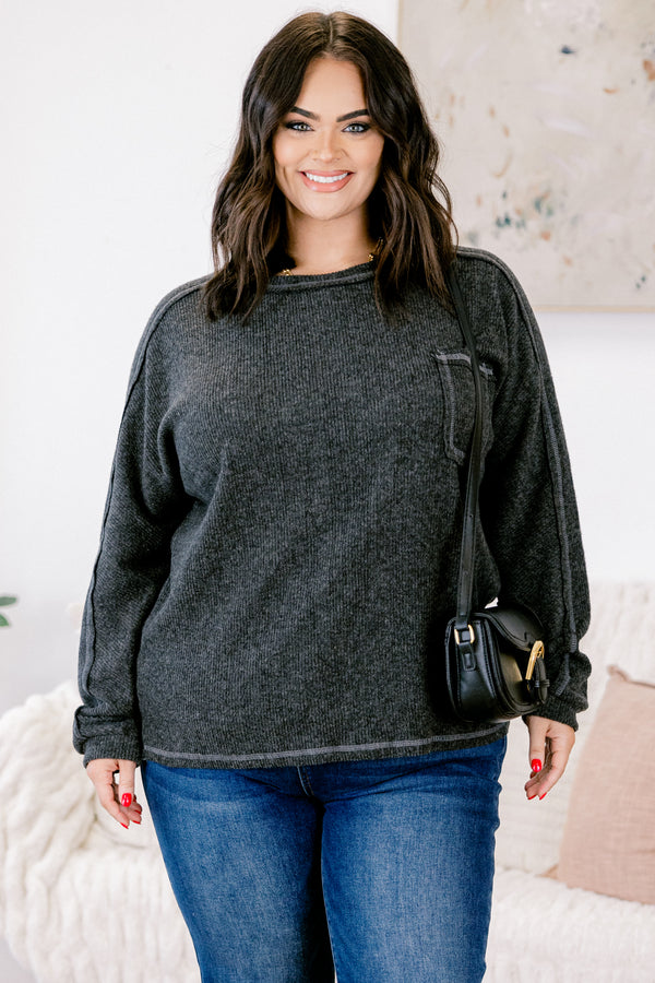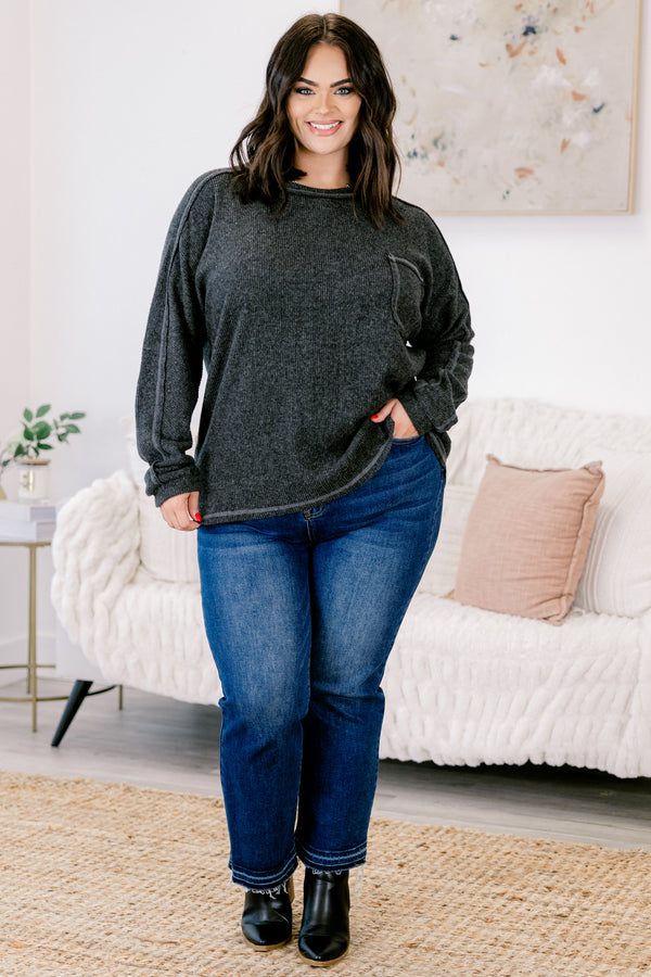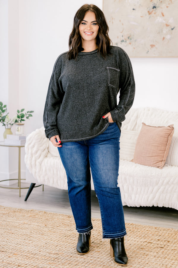 Experience effortless style and comfort with this top in black! Crafted from soft brushed ribbed hacci fabric, this round neck top offers a cozy, flattering fit that moves with you! Perfect for layering or wearing on its own, it’s a versatile addition to your wardrobe that combines casual elegance with everyday ease! Elevate your look while staying comfortable all day long!