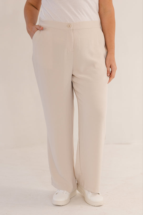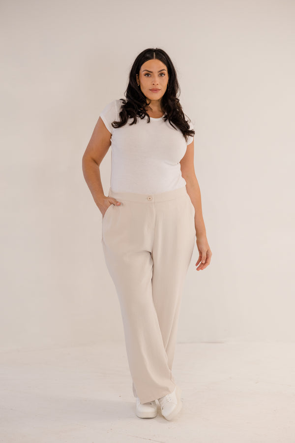 Indulge in pure sophistication with our Lena Straight Leg Pant in stone. Crafted with a button fly closure and an elasticated back waistband for ultimate comfort. With side pockets and a straight leg design, these ankle length pants exude elegance and luxury. Elevate your wardrobe today.