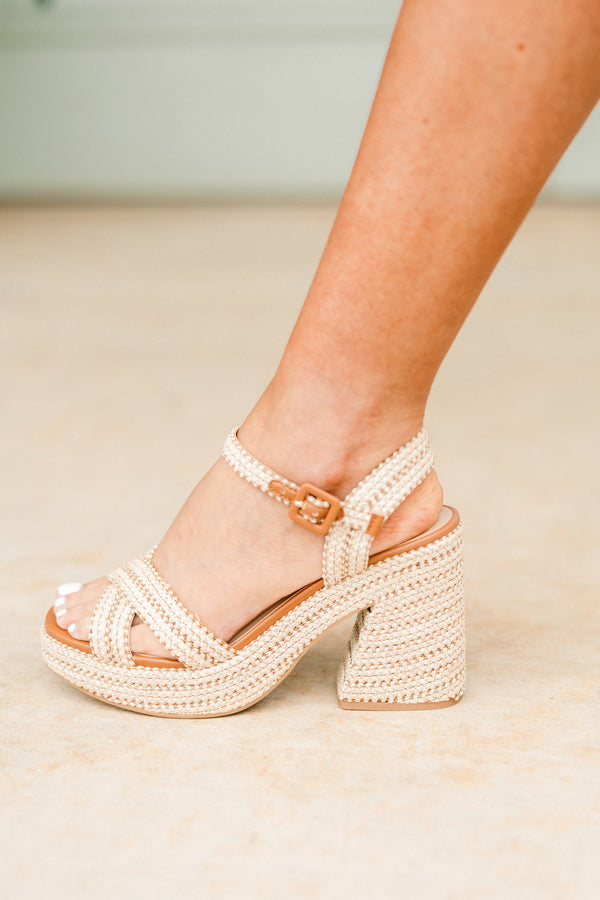 Step into summer with these heels! These tan heels boast a platform made of braided raffia for a playful touch! Plus, the adjustable strap ensures a comfortable fit for all day wear! Bring some sunshine to your wardrobe with these fun and quirky heels!