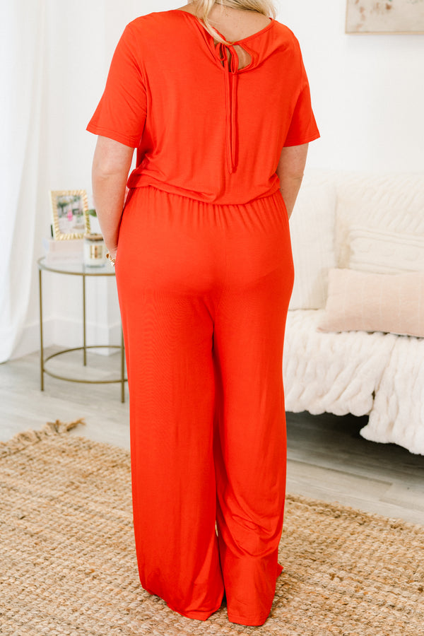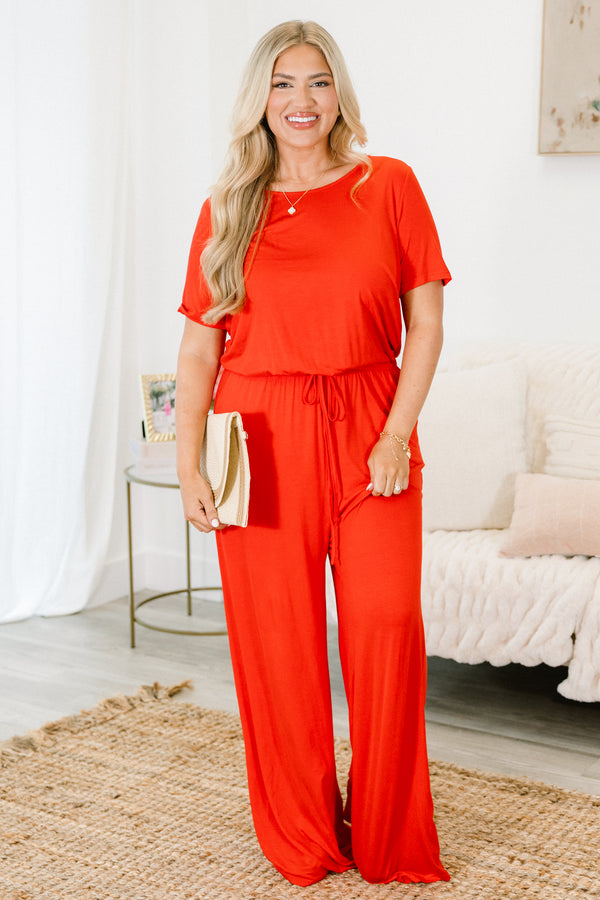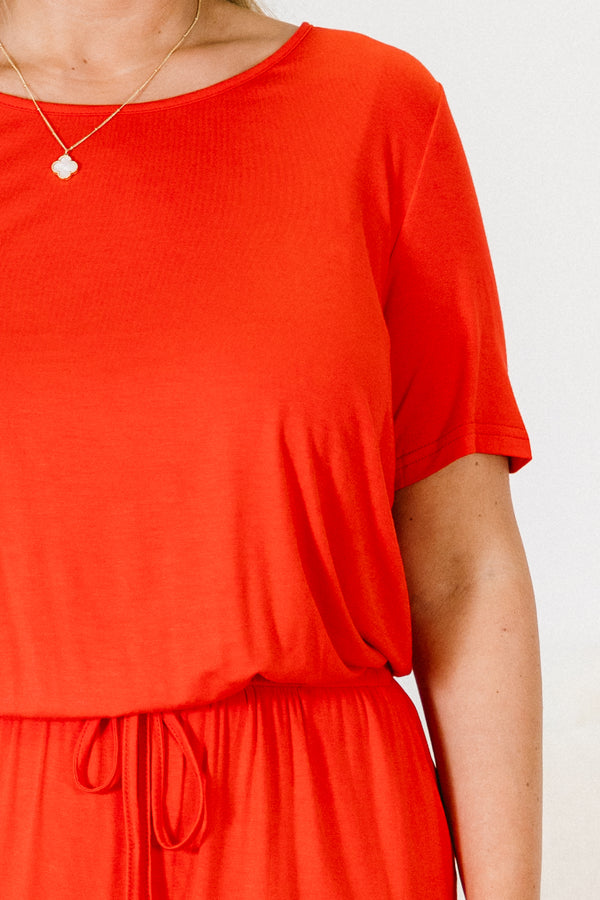 This jumpsuit is perfect for setting a statement! It has a bold red color you can style for every occasion! It's comfortable for all-day wear, has a figure-flattering fit, and features the cutest cinched tie waist and pockets! Style this romper with cute shoes and accessories for an effortlessly chic look!
