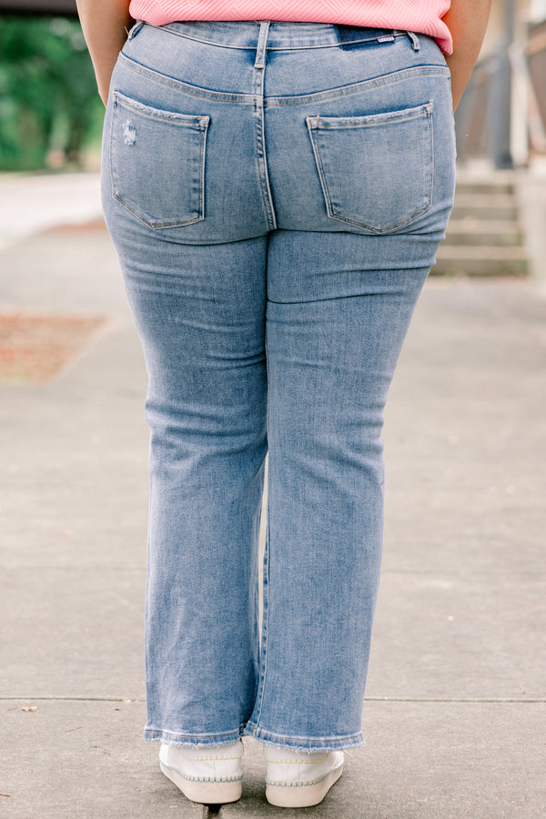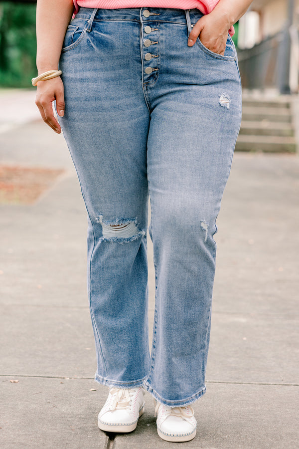Elevate your wardrobe with these jeans! These light wash jeans feature a flattering mid rise and trendy cropped flare cut! The mild distressing adds a touch of edge, while the button fly closure offers both style and functionality! Upgrade your denim game with these must-have jeans!