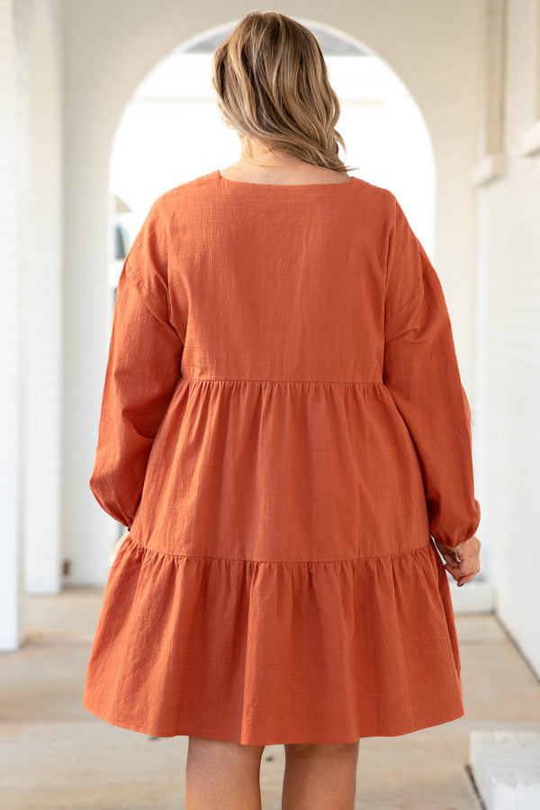 This dress has our hearts! This beauty has a bold orange color with a babydoll style that is super sweet! The flowy, figure flattering fit is perfect for a day out on the town or a night out with the girls! Style this dress with some heels and cute accessories for a sassy chic look!