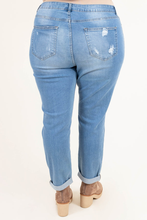 Leave the stress behind in these chic jeans! These jeans have a trendy, distressed pattern and light wash that pairs well with all your favorite tops! The classic, stretchy fit is just what you need to live your best life this season!
