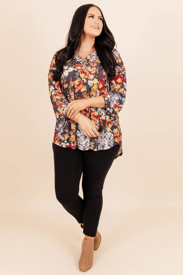 We simply adore this top! It is a versatile piece that can be dressed up or down, making it a stunning addition to any wardrobe! The stretchy fabric allows for both comfort and style, while the bold floral pattern adds a touch of elegance! Perfect for any occasion, this tunic is a must-have for fashion-forward individuals!
