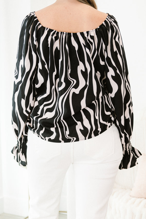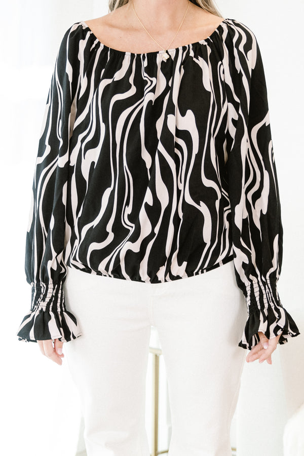 This top features a square neckline and smocked cuff detail sleeves for a flattering and stylish look! Its abstract print adds a touch of uniqueness while the elastic hemline provides comfort and a perfect fit! Upgrade your wardrobe with this must-have top!