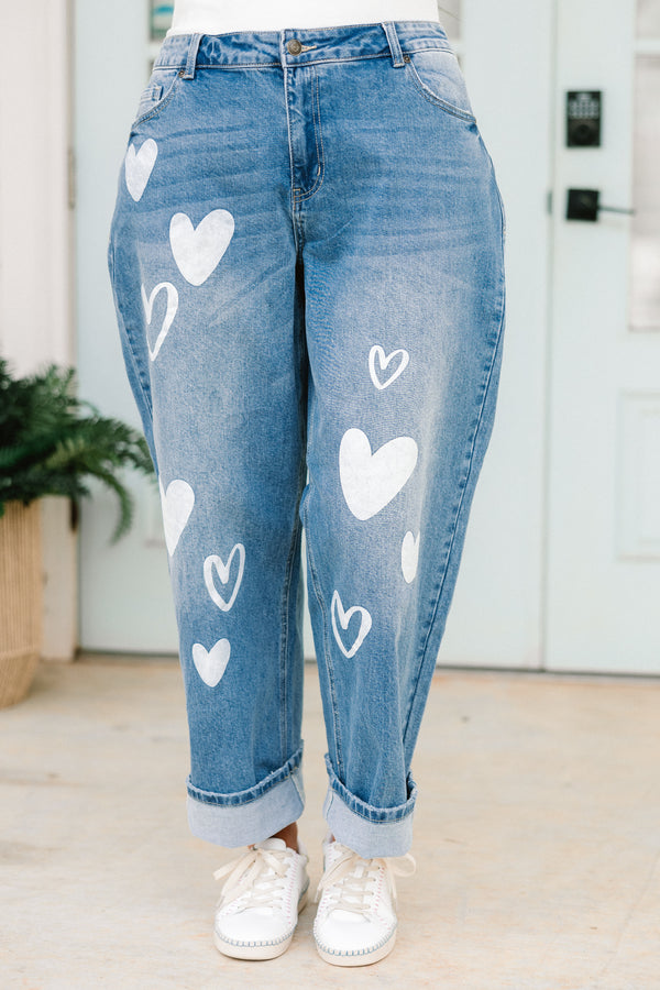 Channel effortless style in these jeans in medium wash! These heart doodle straight jeans exude a sense of casual sophistication, perfect for any occasion! Made with high-quality denim, these jeans offer a comfortable fit and a timeless silhouette! Elevate your denim game with these must-have jeans!