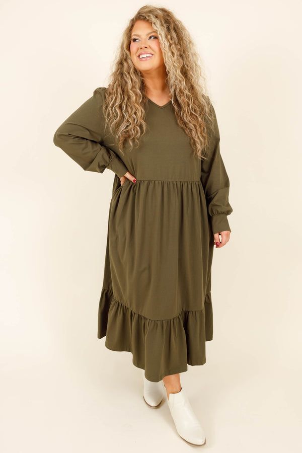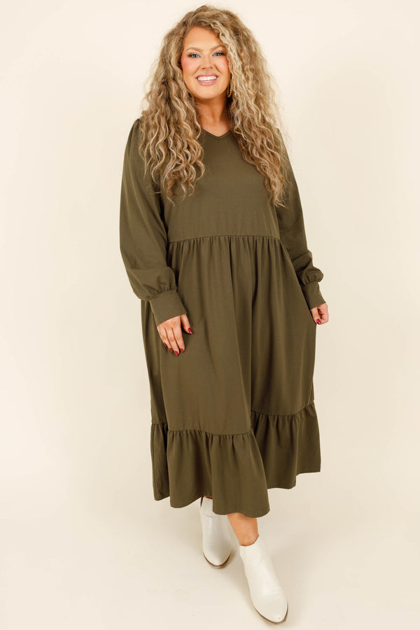 We simply adore this dress! Crafted with a comfortable stretchy fabric and lovely green color, it is designed with a perfect midi length for a flattering silhouette! Look and feel your best all day long in this stylish and comfortable dress!