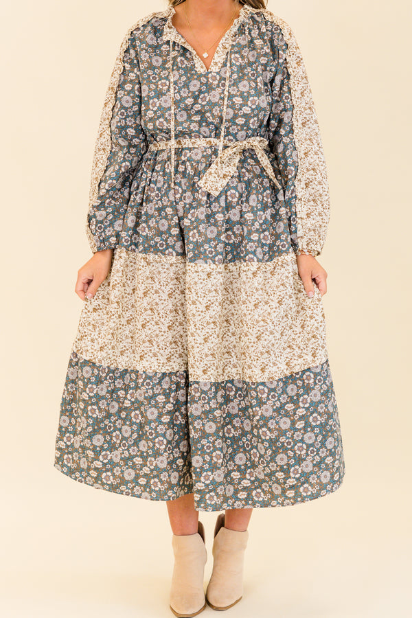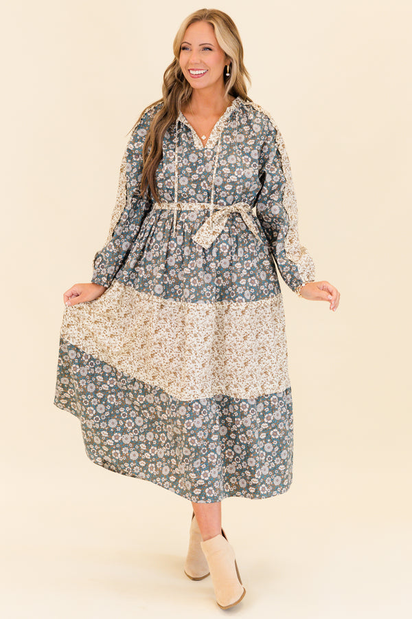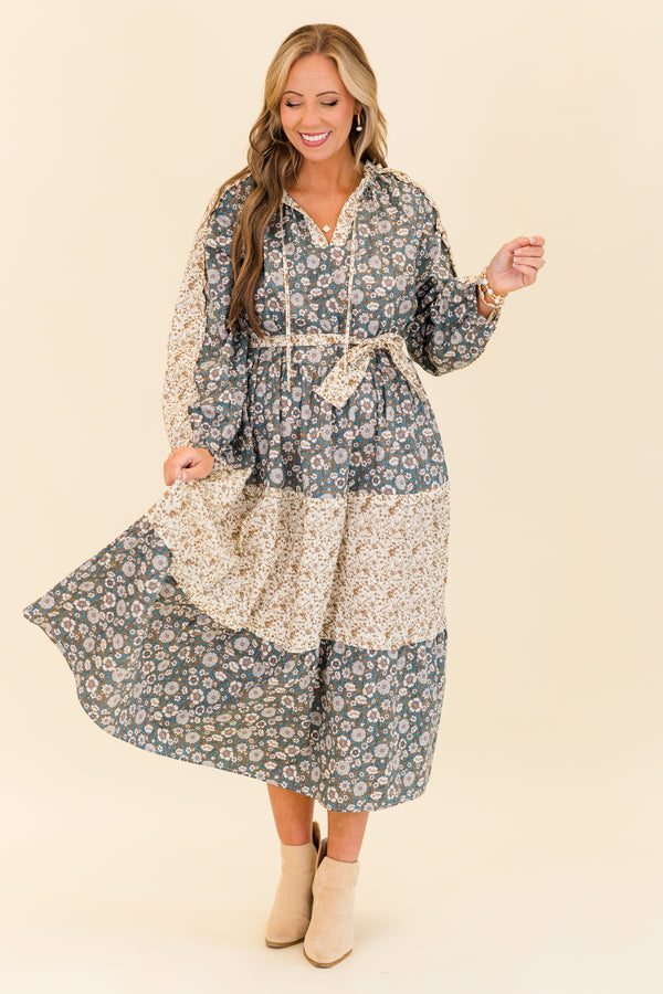 Get ready to strut your stuff in style with this maxi dress! This long-sleeve dress features a playful olive multi-colored design with a v-neckline and fun tassels! The waist-tie and subtle ruffles add a touch of femininity, while the unique floral patchwork creates a one-of-a-kind look! Perfect for any occasion, this dress will have you feeling confident and chic!