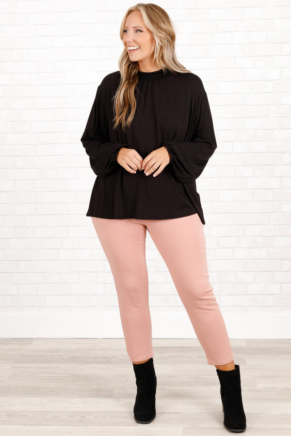 This lovely top is the perfect everyday top for any wardrobe! Featuring a high neckline and neutral black color, this top can easily go from the office to brunch! The flowy fit will ensure you stay comfortable no matter where you're headed!