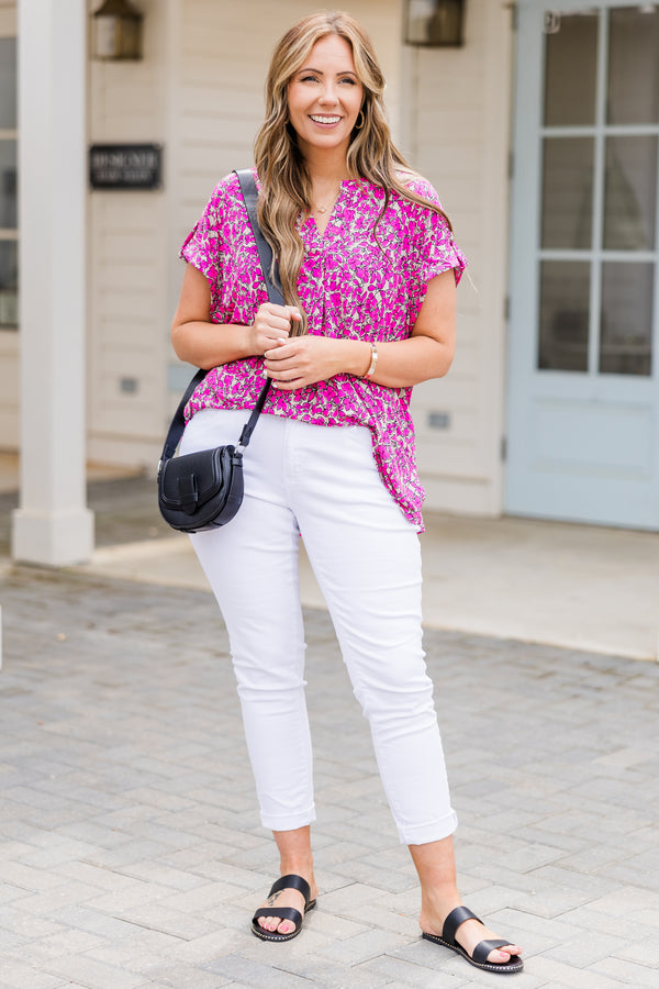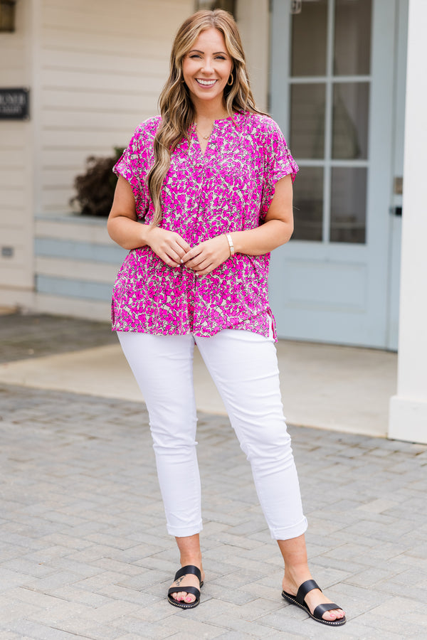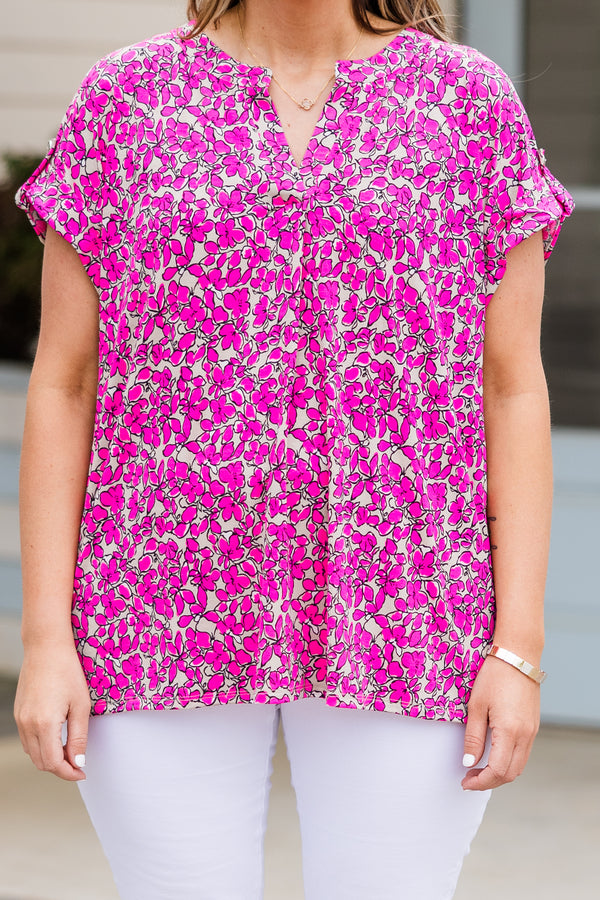 Spring into action and grab this beauty! This top has an easy care, wrinkle free design and a trendy floral pattern that is just what your wardrobe needs! It features a bold oyster color and will quickly become a go-to for all day wear! Pair with skinnies or shorts for a classic chic look!