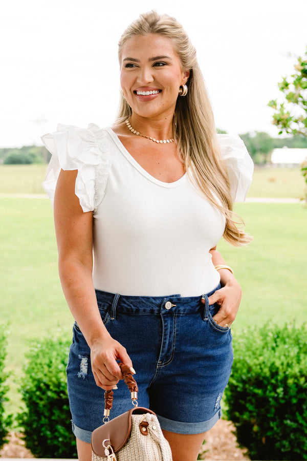 Say hello to your new go-to shorts, these shorts in a medium wash! Featuring a cuffed hem, high rise, and a zip fly with a single button closure, these shorts are perfect for any occasion! And with a touch of distressing, they add just the right amount of edge to your look! Be uniquely you in these shorts!