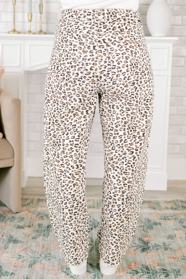 Go wild in these jeans! These high rise leopard barrel jeans will have you feeling fierce and fashionable! Embrace the trend while still staying comfortable in these cream-colored jeans! Dress them up or down for a versatile and stylish look!