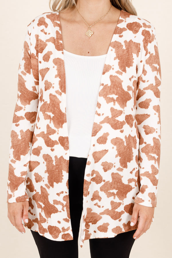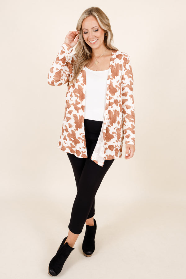 Revive your wardrobe with the addition of this beauty! This cardigan has a beautiful brown color with a trendy western pattern that is perfect for any casual outing! The stretchy fit layers easily over all of your favorite tops and skinnies for the ultimate chic look1