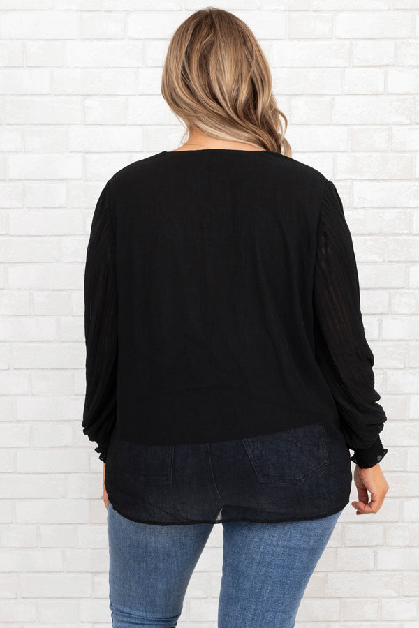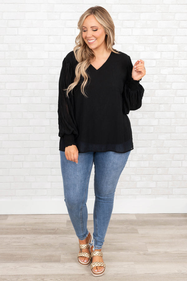 Don’t leave any moments unwritten or this top in your cart! This top has a solid black color you can dress up or down for every occasion! It's comfortable for all-day wear, has a flowy fit, and features the trendiest bubble sleeves! It has a figure-flattering fit, and can be paired with your favorite shoes and accessories! Simply style this top with skinnies and heels for an effortlessly chic look!