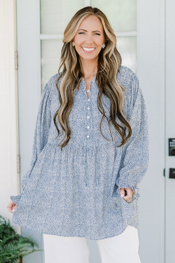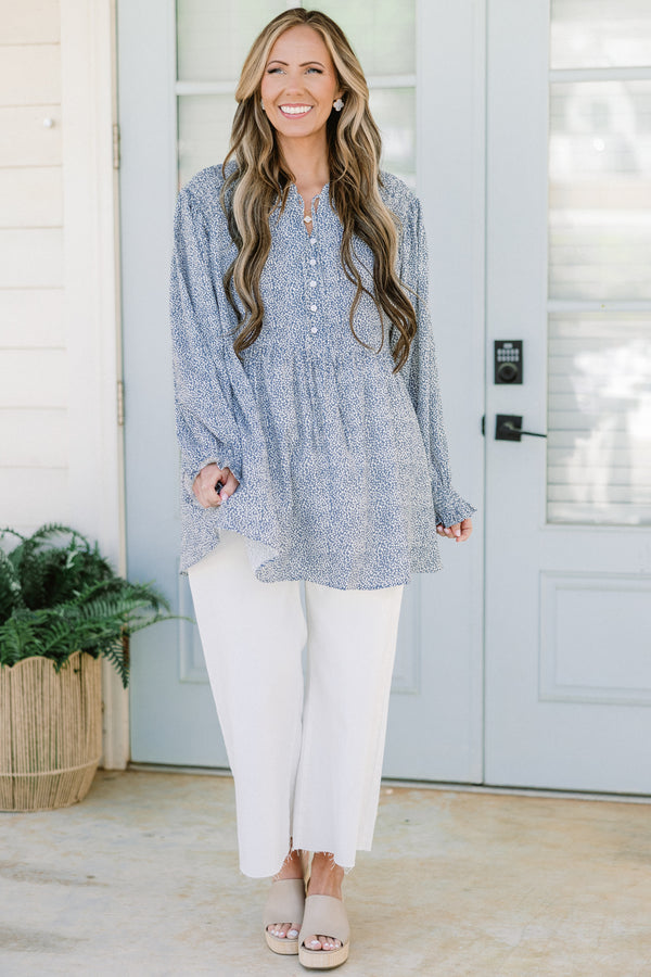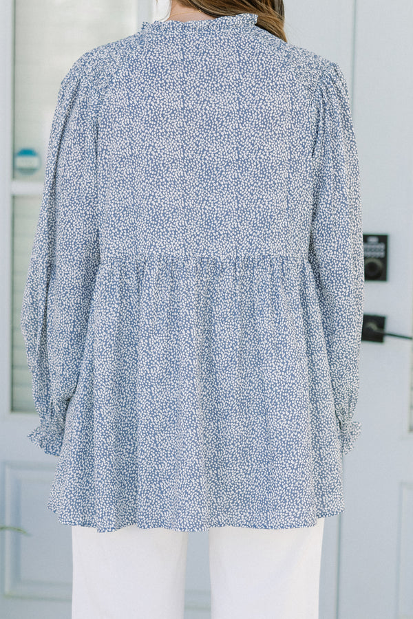 Embrace your inner fierceness with this gorgeous top! It features a stylish babydoll design and a bold blue leopard pattern that is so sweet! This top is the perfect choice for a brunch date or a day out on the town! Elevate your wardrobe with this trendy and versatile piece!